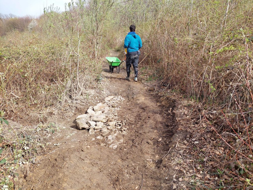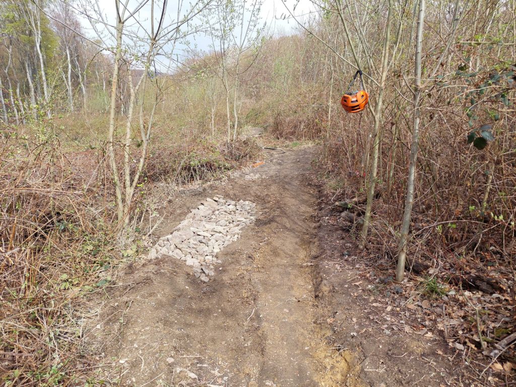 Ein paar von uns haben den 10. April damit verbracht, Entwässerungsrinnen zu graben, Steine zu sammeln und die Gruben mit den Steinen aufzufüllen. Ein paar hundert Kilo Steine aus der Umgebung haben jetzt ein neues Zuhause am Roan-Trail und sorgen hoffentlich langfristig dafür, dass das Wasser besser abrinnt.