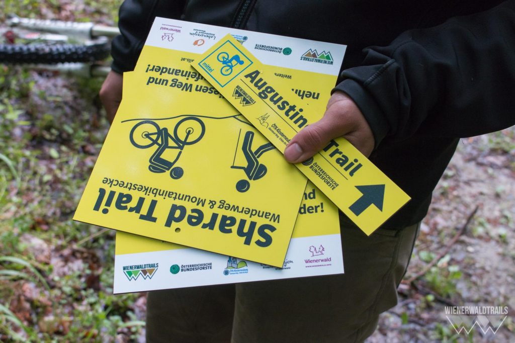 Donnerstag der 5. Mai 2016. 8 Uhr, der Wecker läutet auch an meinem freien Tag. Das Wetter draußen sieht nicht vielversprechend aus. Wolkenverhangener Himmel, einstellige Plusgrade, eisiger Westwind. Dennoch werfe ich mich in meine Sportsachen, schnappe mein Bike und treffe mich im Westen von Wien mit Flo. Denn heute werden die ersten Shared-Trail-Schilder aufgestellt.