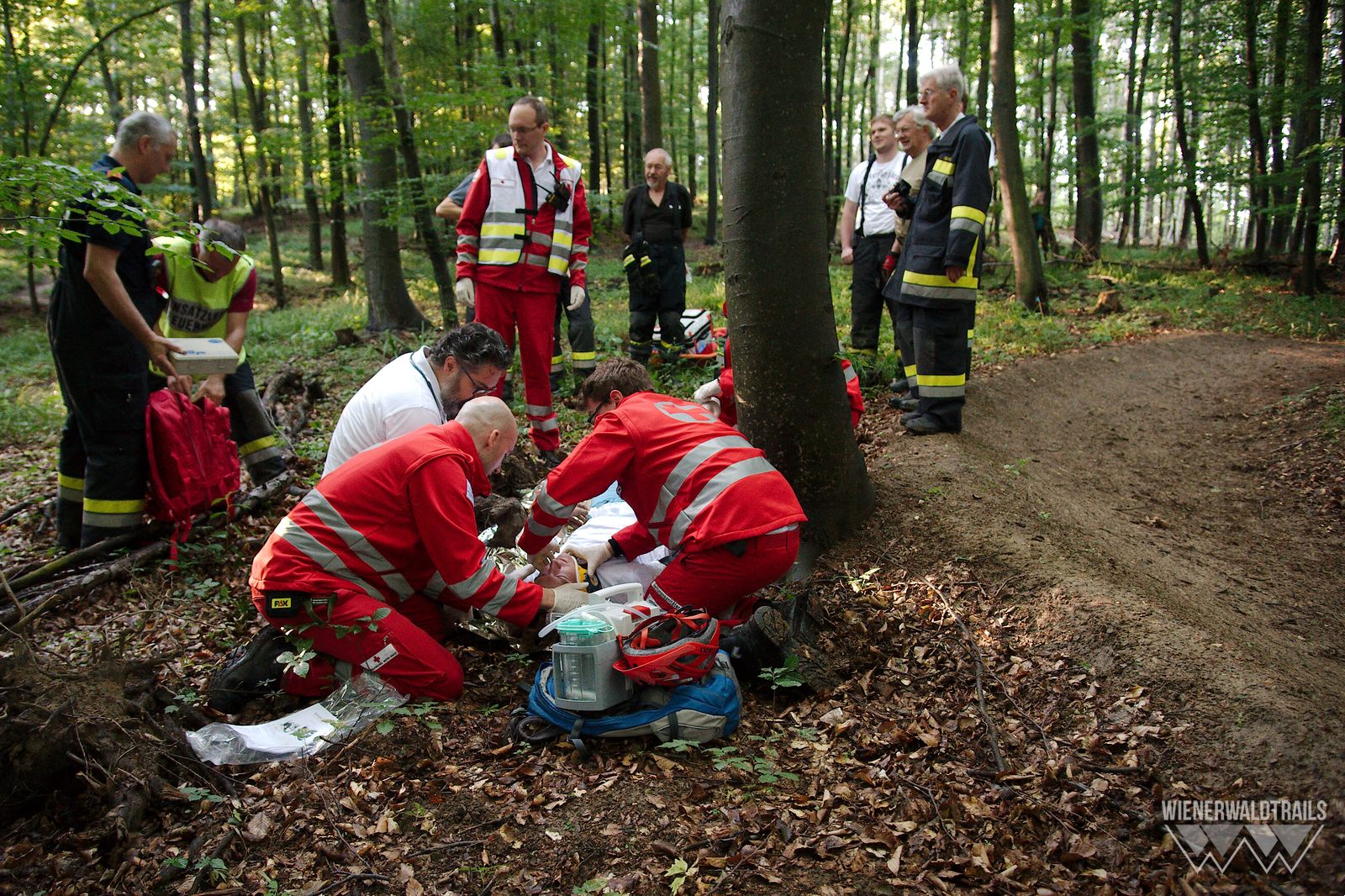 Mit dem Baubeginn der zwei Strecken in Weidlingbach hatte die „Arbeitsgruppe Betrieb“ (die hauptsächlich aus Saul und mir – Peter – besteht) einiges an neuer Arbeit. Unter anderem der Entwurf eines Sicherheitskonzepts für den Trail-Park. Dazu war unser erster Kontakt mit der zuständigen Rettungsstelle in Klosterneuburg, wo wir uns mit Johannes und Christopher, den zwei zuständigen Personen der Bezirksstelle, trafen. Zwei junge, dynamische Männer, selbst Mountainbiker und voll motiviert gemeinsam was auf die Beine zu stellen. Ich war wirklich froh mit ihnen auf einer Wellenlänge arbeiten zu können.