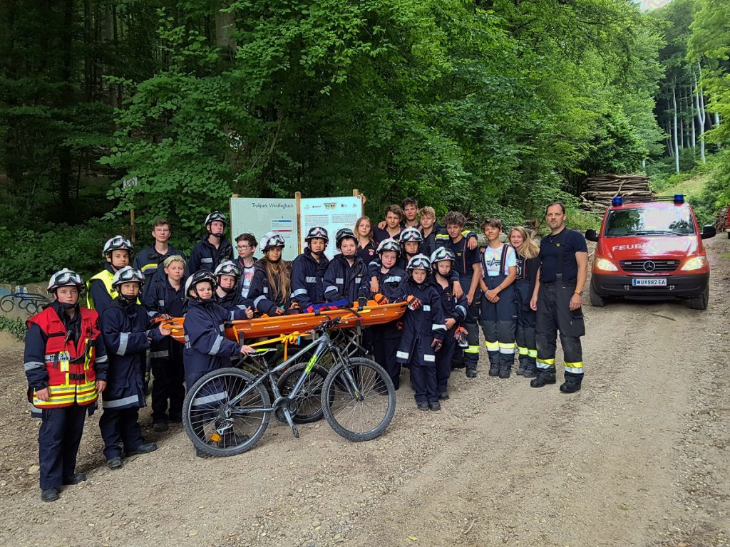 Nachwuchsarbeit kennt wohl keine Grenzen! Die Freiwillige Feuerwehr hat mit ihrer Jugend am Trailpark Weidlingbach für den Ernstfall geprobt, damit auch in den nächsten Jahren verunfallte MTBer sicher und rasch geborgen werden. Wir sind begeistert und dankbar zugleich.