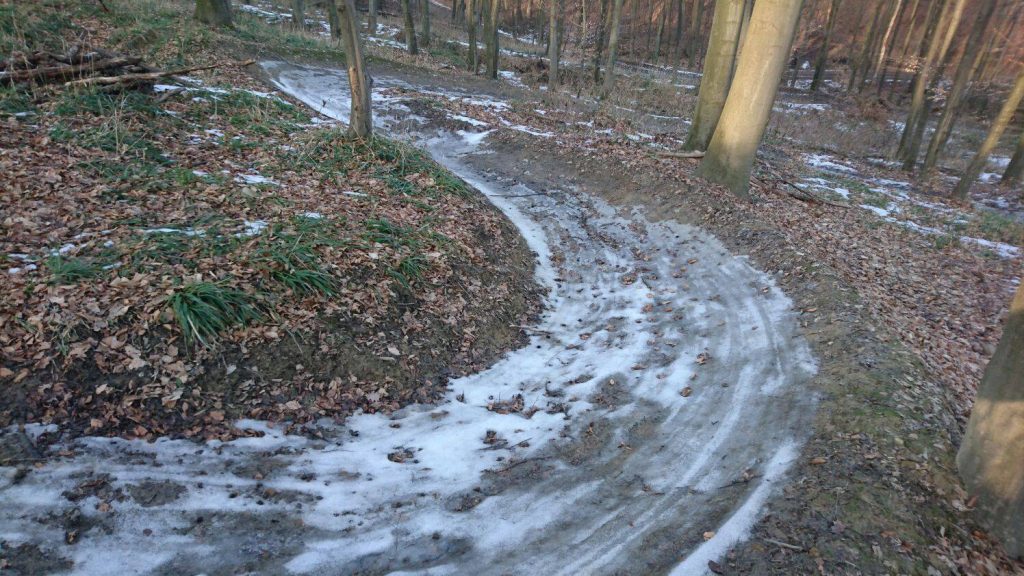 Wie ihr auf den Fotos vom 16.02.2017 gut sehen könnt, ist der Trail momentan noch ziemlich mit Schnee und Eis bedeckt bzw. matschig. Wir bitten euch, in den nächsten Tagen und an den nächsten Wochenenden die Trails zu meiden bis sie wieder einigermaßen trocken sind. Im jetzigen Zustand würden die Trails durch das Befahren merkbare Schäden abbekommen und damit uns Mehrarbeit in unserer Freizeit verursachen.