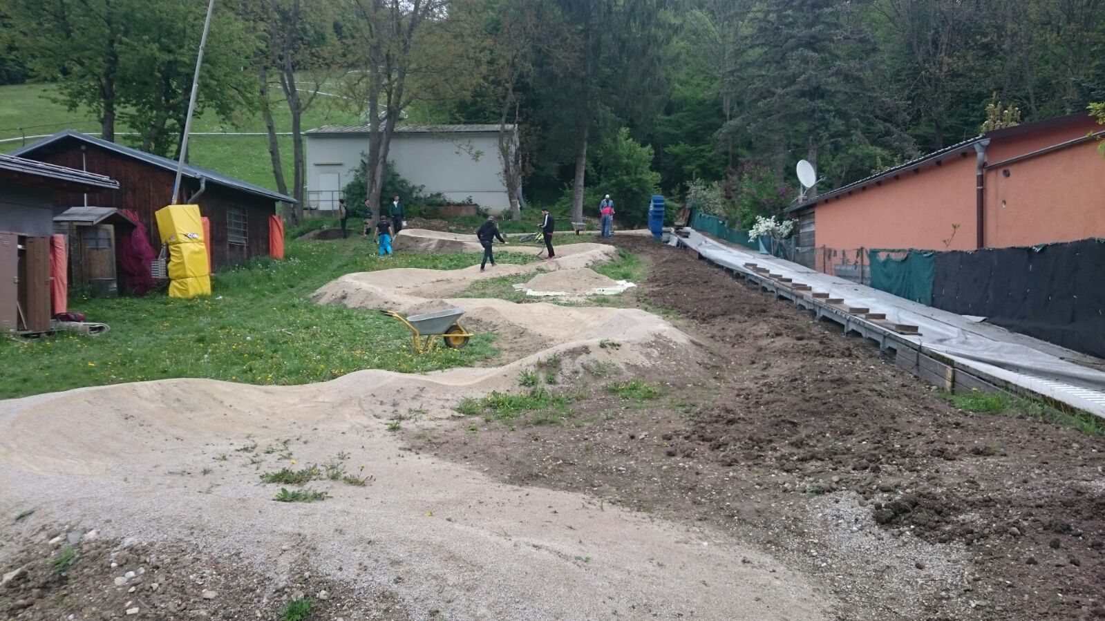 Im Auslauf der “Skipiste” wird gerade ein Pumptrack aus Druckplatten Modulen gebaut. Ziel eines solchen Rundkurses ist es, lediglich durch Gewichtsverlagerung am Bike schnellstmöglich voranzukommen. Die offizielle Eröffnung steht kurz bevor – ihr werdet es als erste erfahren!